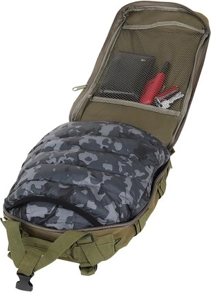 Esta mochila con una capacidad de 26 litros está hecha de material de alta calidad, impermeable y resistente a desgarros. Está equipada con cinco compartimentos, incluido el bolsillo principal con cremallera extendida para un acceso sencillo, bolsillos interiores más pequeños y separadores de malla.