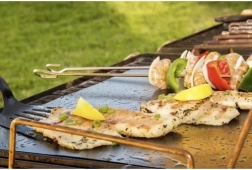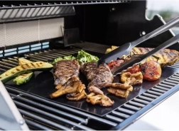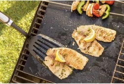 El tapete evita que los alimentos se peguen o se cuelen entre las rejillas, manteniendo carne, pescado y verduras jugosos, y dejando la parrilla y el horno limpios.