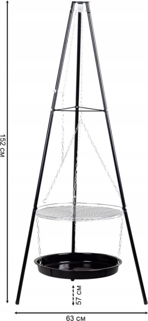 Gracias a su estable estructura de trípode, la parrilla es segura y adecuada para uso en exteriores, ya sea en el jardín o de camping.