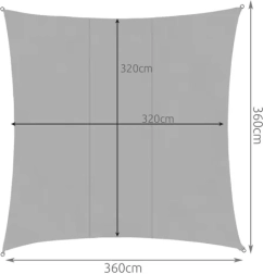 Toldo cuadrado 3,6x3,6 m es la elección perfecta para crear sombra en el jardín, la terraza o el área de camping. El toldo está hecho de materiales premium y tiene un acabado superficial especial que es impermeable y permite un secado rápido, lo cual es importante ante cambios repentinos del tiempo.