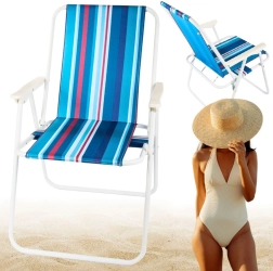 Esta silla de playa plegable combina bajo peso, transporte sencillo y comodidad probada. El marco de acero con recubrimiento en polvo aporta estabilidad, mientras que el tejido resistente del asiento y respaldo es agradable al tacto y fácil de limpiar. Los reposabrazos cómodos favorecen la relajación incluso en sesiones más largas.