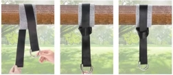 Instalarás el kit en pocos minutos: basta con envolver las correas/nudos de cuerda y asegurar con mosquetones. Sin herramientas y sin dañar las superficies.