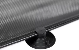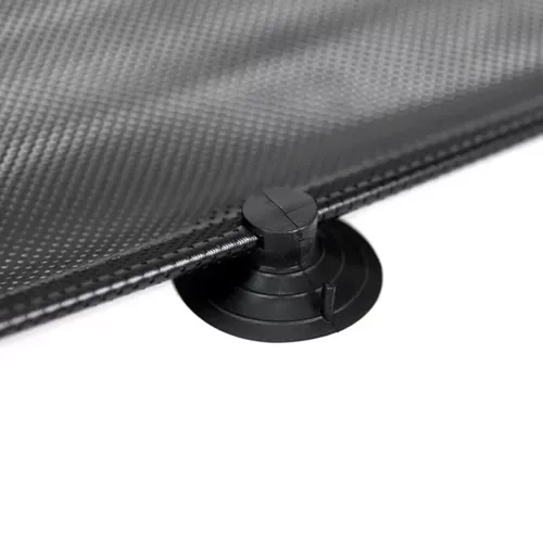 La instalación se realiza en un momento: tres ventosas y un gancho mantienen el estor firmemente sujeto al cristal, sin taladros ni adhesivos. Gracias al enrollado automático, basta con pulsar el botón y el estor se recoge solo. Para ventanillas inclinadas, en la parte inferior hay una ventosa para fijación adicional y evitar que el estor estorbe durante la marcha.