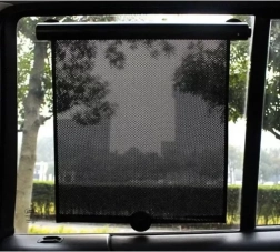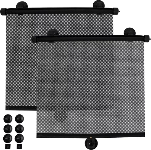 La malla oscura de textura fina reduce el deslumbramiento y la temperatura en el habitáculo, haciendo el viaje más cómodo para niños y adultos.