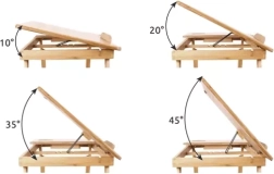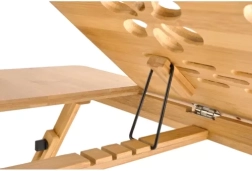 La mesa de bambú para portátil mejora la ergonomía tanto en casa como de viaje. La superficie ajustable con 4 niveles ayuda a aliviar la espalda y el cuello, mientras que las ranuras de ventilación favorecen la circulación del aire y evitan el sobrecalentamiento del portátil: la batería dura más y el dispositivo funciona de manera estable.
