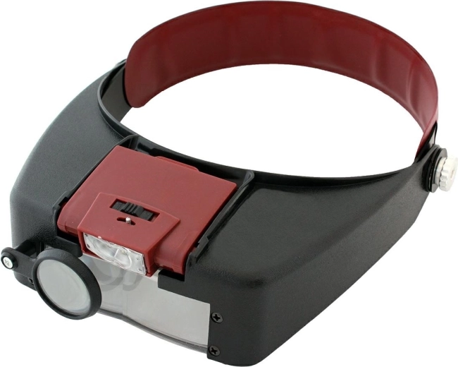 Práctica lupa frontal con lentes intercambiables y gran aumento de 1,9x hasta 8,5x, ideal para relojeros, electrónica, aficionados al bricolaje y botánica. Gracias al montaje en la cabeza, tienes las manos libres y las dos luces LED ajustables iluminan con precisión el detalle examinado.