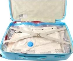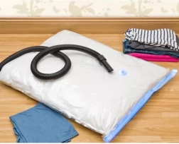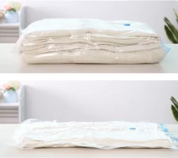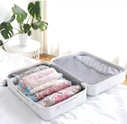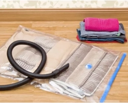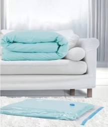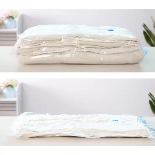 Conecta la aspiradora a la válvula y reduce en minutos el volumen de ropa, mantas o edredones. Ideal para pisos pequeños, armarios y maletas.