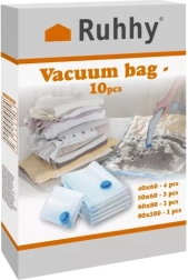 El juego de bolsas al vacío te ayuda a organizar de forma eficiente tu armario, ropa de cama y textiles infantiles. Gracias al cierre hermético y a la válvula para conectar a la aspiradora, comprimes fácilmente piezas voluminosas y liberas valioso espacio en armarios, bajo la cama o en cajas de almacenamiento.