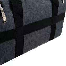 La bolsa está diseñada para cumplir con los requisitos de las aerolíneas para el equipaje de mano. El compartimento principal con fondo más rígido protege el contenido y facilita el embalaje, mientras que el bolsillo frontal con cremallera y la pareja de bolsillos laterales de malla mantienen los objetos pequeños siempre a mano. El resistente material poliéster 600D es fácil de limpiar e impermeable, por lo que tus cosas estarán seguras.