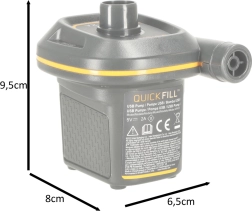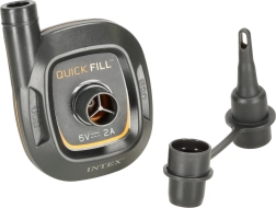 La bomba eléctrica compacta INTEX Quick-Fill con USB 5V/2A infla y desinfla rápidamente colchones, aros de piscina y otros productos inflables. Ofrece funcionamiento bidireccional, alto rendimiento de 150 l/min y boquillas universales para diferentes válvulas. Gracias a sus dimensiones reducidas, es ideal para viajar y puede alimentarse desde un cargador, powerbank o cualquier puerto USB.