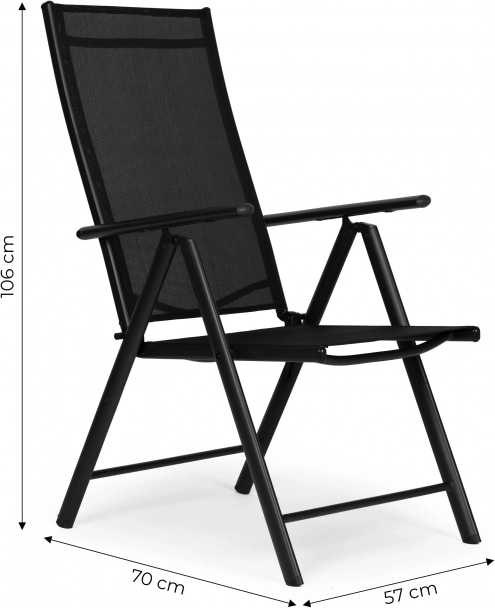 Las sillas se pliegan rápidamente a dimensiones compactas, por lo que las guardarás sin esfuerzo o las llevarás a un pícnic o barbacoa. Los topes antideslizantes y protectores resguardan el suelo de arañazos. El moderno acabado en negro encaja en terrazas, balcones y jardines, así como en restaurantes al aire libre.