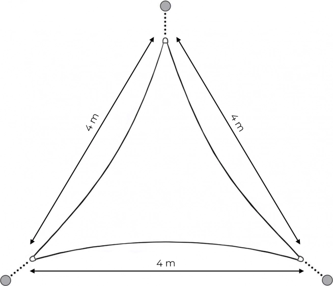 El formato triangular de 4 × 4 × 4 m crea una sombra agradable para reuniones familiares, tumbonas y zona infantil, mejorando el confort térmico en los días calurosos.