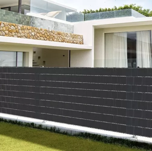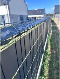 Aumenta la privacidad y reduce la visibilidad a través de la valla de panel. La cinta antracita aporta a la valla un aspecto limpio, uniforme y moderno que armoniza con el entorno.