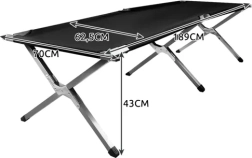 Disfruta de un sueño cómodo tanto al aire libre como en casa. La cama de campaña TRIZAND ofrece dimensiones confortables de 189 × 70 × 43 cm, adecuadas para adultos y adolescentes. Gracias a la altura elevada duermes sobre el suelo, seco y abrigado, mientras que la robusta estructura metálica y la tela Oxford 600D garantizan una larga vida útil.