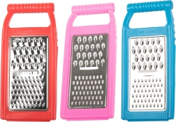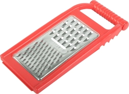 Rallador de cocina universal con el que prepararás ensaladas, guarniciones e ingredientes para hornear en un instante. Su forma plana ahorra espacio en el cajón y su construcción ligera se sostiene cómodamente. Combina una superficie de acero inoxidable afilada con un marco de plástico resistente para un uso cómodo y seguro.