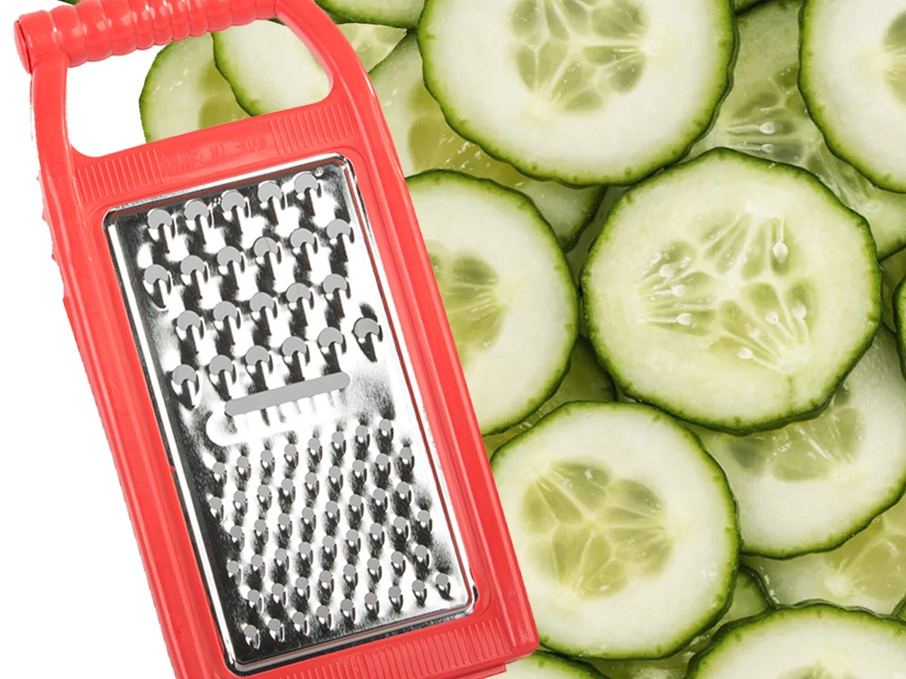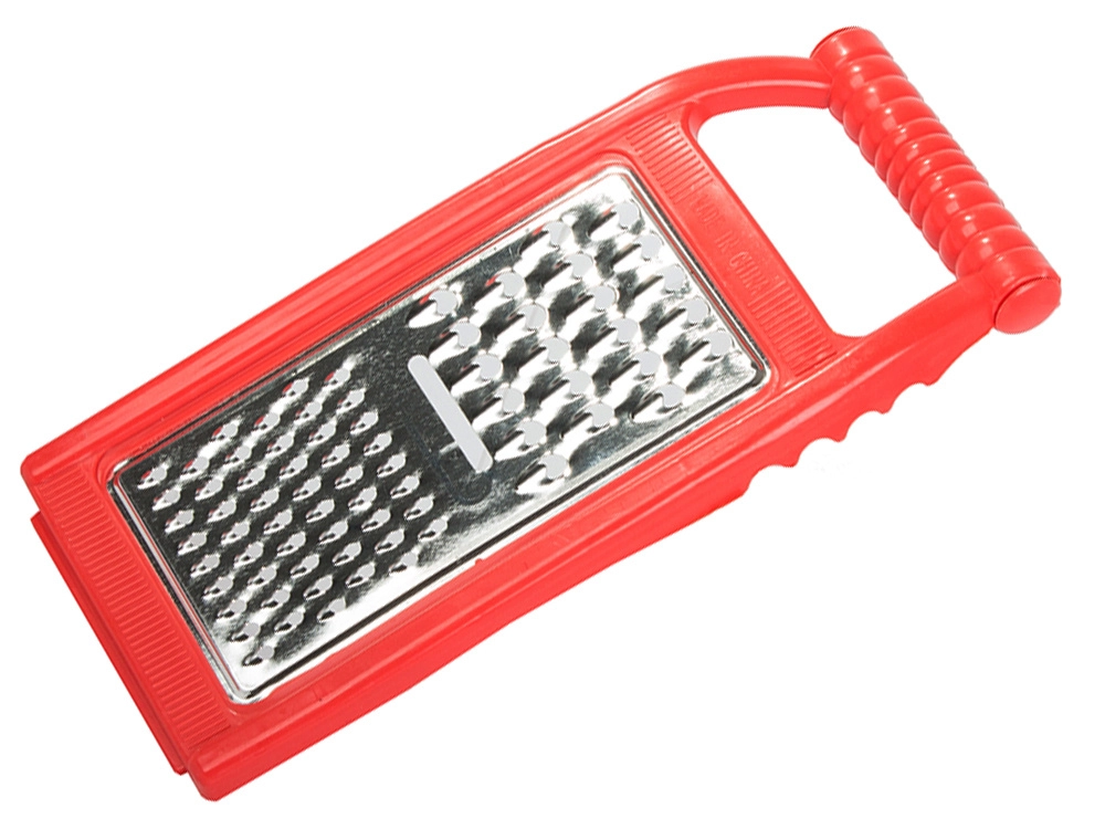 El mango ergonómico se adapta a la mano y los cuatro ganchos permiten apoyar el rallador sobre el recipiente para un trabajo más seguro.