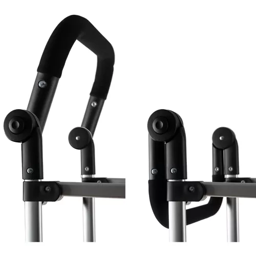 El resistente bastidor se pliega en un instante y la altura del asa se ajusta fácilmente para guiar el carrito con comodidad en cualquier terreno.