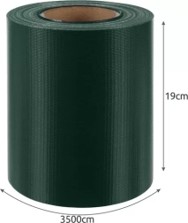 Práctica y elegante cinta para valla de PVC de 19 cm de altura y 35 m de longitud, ideal para cubrir vallas paneladas, barandillas de balcón o terraza y para mamparas en cobertizos. El material de alto gramaje 450 g/m² es resistente a los rayos UV, a la intemperie, a la humedad y a las bajas temperaturas, por lo que el color no se decolora y la cinta no se agrieta.