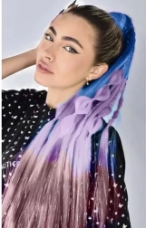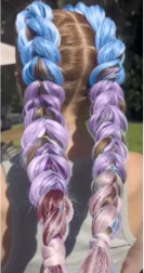La combinación de azul, morado y rosa con delicados mechones brillantes ilumina al instante cualquier peinado y le da un carácter único.