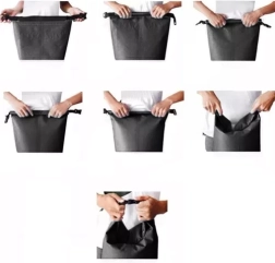 Enróllalo al menos tres veces y cierra la hebilla: un sellado sencillo y eficaz contra el agua y las aperturas accidentales.