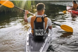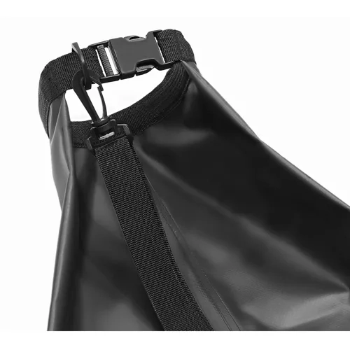 El práctico cierre roll-top con hebilla garantiza un sellado rápido y además permite fijar la bolsa a la embarcación o a la mochila. La correa ajustable (55–105 cm) facilita el transporte al hombro. Mantenimiento sencillo: basta con pasar un paño.