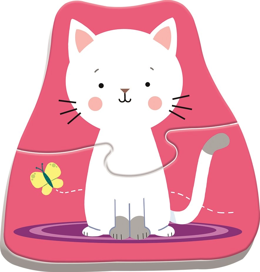 Descubra los primeros rompecabezas para bebés: 4 adorables puzzles con forma de animales domésticos. Cada imagen consta de 2 piezas grandes, por lo que los niños experimentan el éxito rápidamente y con gusto los montan una y otra vez. Los colores intensos y las ilustraciones amigables invitan de forma natural al juego.