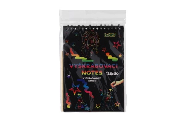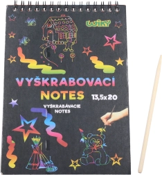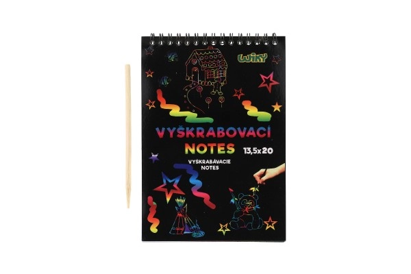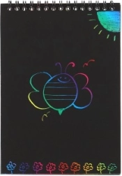 El bloc de rascar es ideal para pequeños artistas que desean descubrir sus habilidades creativas. La capa negra especial de cada hoja oculta un fondo de colores que aparece al retirar la capa con el palito de madera incluido.