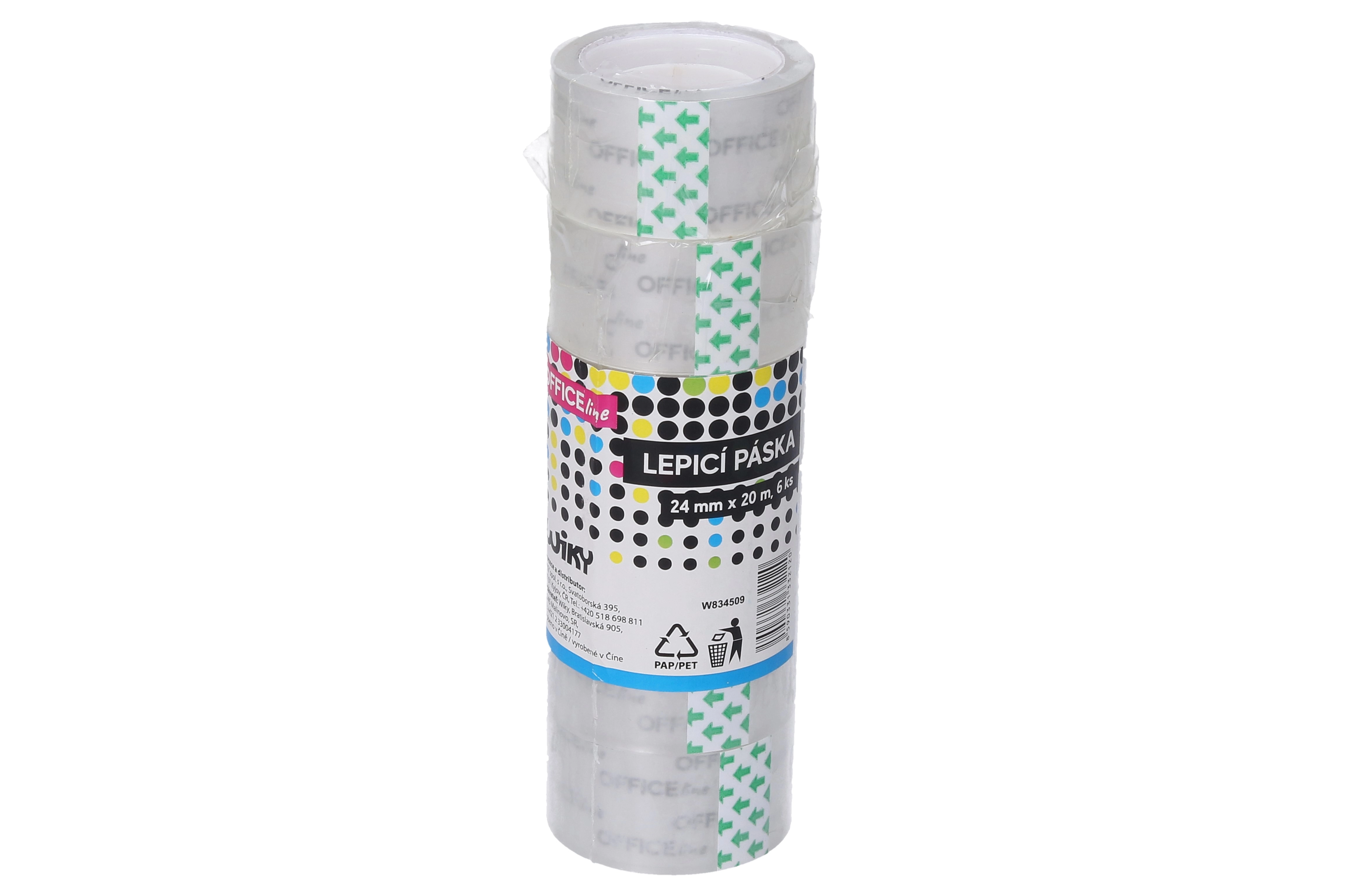 Esta cinta adhesiva transparente es ideal para el uso diario en casa y en la oficina. El paquete incluye 6 unidades y cada una tiene un ancho de 24 mm y un largo de 20 metros, lo que garantiza longitud suficiente para todas tus necesidades.