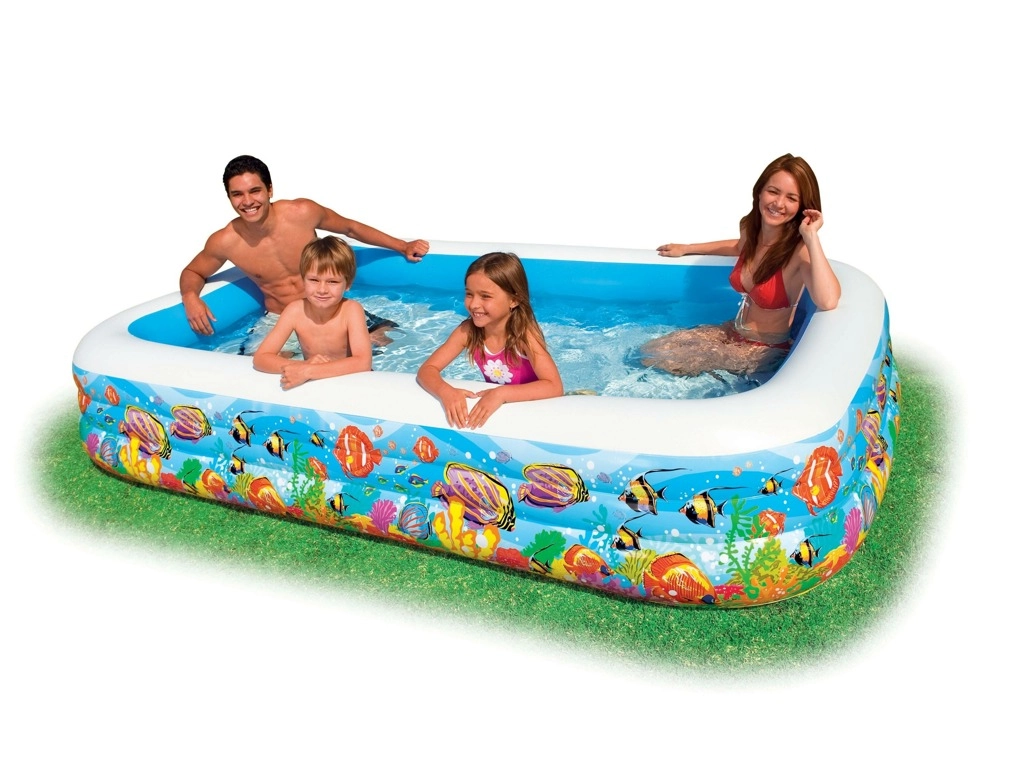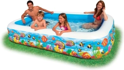 Disfruta del verano al máximo con la espaciosa piscina inflable INTEX de estilo mundo marino. Sus dimensiones de 305 × 183 × 56 cm ofrecen espacio suficiente para niños y adultos. Tres cámaras de aire independientes para un inflado y desinflado rápidos, vinilo de alta calidad resistente y un kit de reparación incluido la convierten en una excelente opción para la diversión en el jardín.