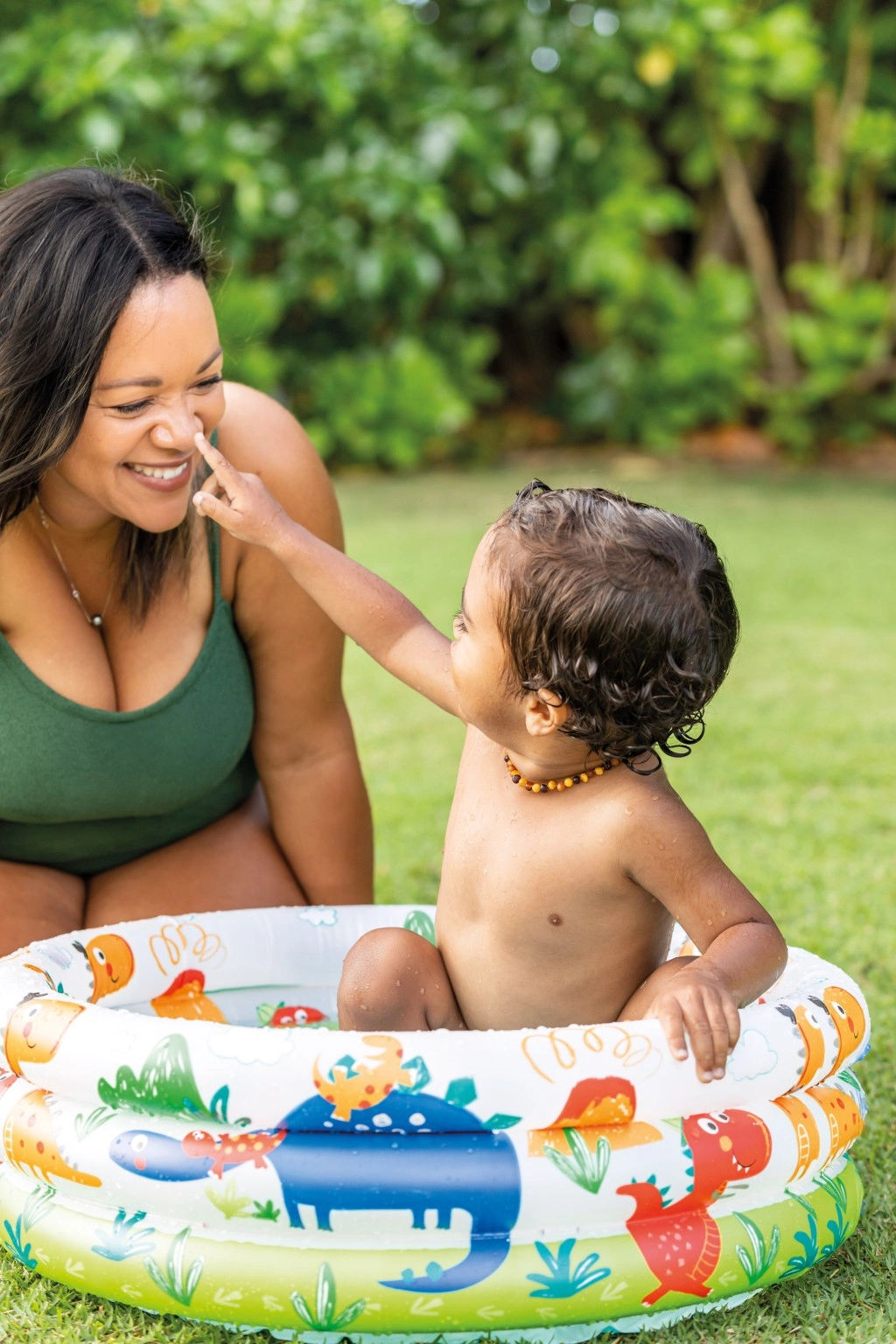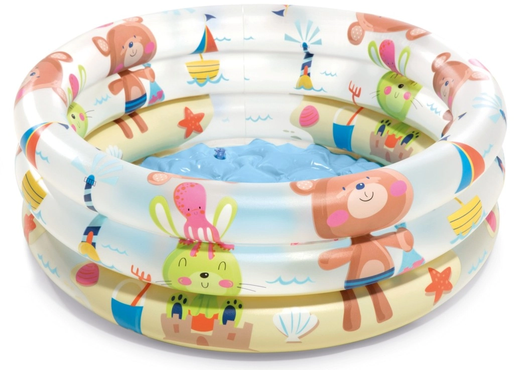 Los aros inflables suaves y el fondo texturizado aportan comodidad para los más pequeños y estabilidad durante el juego en el agua.