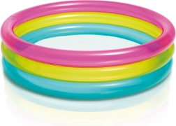 La piscina infantil inflable INTEX Rainbow es colorida y práctica para los días de verano. Gracias a sus tres anillos transparentes, es estable y cómoda, mientras que sus dimensiones compactas de 86 × 25 cm encajan en la mayoría de jardines, terrazas y balcones. La capacidad de 68 litros con una altura de agua recomendada de 17 cm garantiza una superficie poco profunda y segura para los más pequeños.
