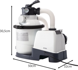 La filtración de arena INTEX es la elección ideal para piscinas elevadas medianas y grandes. El alto caudal de 5700 l/h y el sistema Hydro Aeration mejoran significativamente la circulación y la oxigenación del agua, lo que se refleja en su transparencia y en un mayor confort de baño. El depósito resistente a la corrosión, el manómetro claro y la unión giratoria anular facilitan la instalación y el mantenimiento.