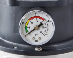 La válvula de cinco vías, el manómetro claro y el temporizador integrado para ciclos automáticos facilitan el funcionamiento y ahorran energía.