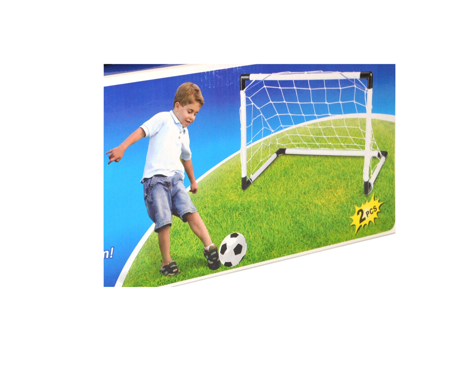 Juego de dos porterías de fútbol de plástico, ideal para jóvenes futbolistas. El montaje sencillo en 10-15 minutos garantiza que incluso los niños habilidosos puedan hacerlo.