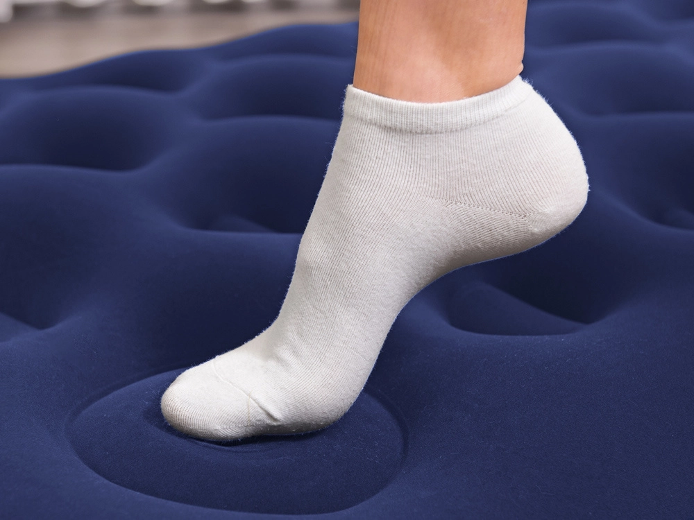 El colchón inflable individual BESTWAY ofrece un descanso cómodo en casa y de viaje. Gracias a su resistente estructura coil-beam, la bomba de pie integrada y la almohada incorporada, se infla fácilmente y proporciona un soporte estable y confortable. La superficie superior de vinilo aterciopelado aumenta la comodidad, mientras que la válvula de doble sentido permite un inflado y desinflado rápidos.