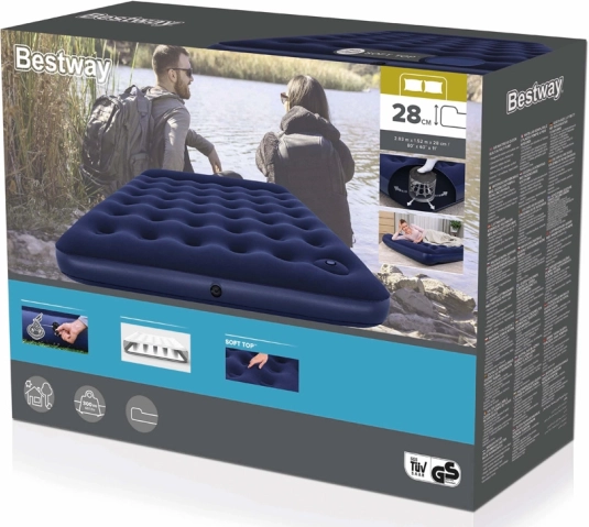 El colchón inflable BESTWAY Queen es una solución fiable para invitados, vacaciones en la casa de campo y camping. La estable estructura coil‑beam distribuye el peso de forma uniforme y mantiene la cama agradablemente firme, mientras que la superficie de vinilo suave es agradable al tacto. La almohada integrada sostiene la cabeza y el cuello, para que disfrutes de un descanso confortable estés donde estés.