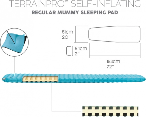 El grosor de 5,1 cm y el valor R 4,7 conservan el calor y proporcionan soporte estable incluso en superficies irregulares. Ideal para un sueño cómodo al acampar en climas más fríos.
