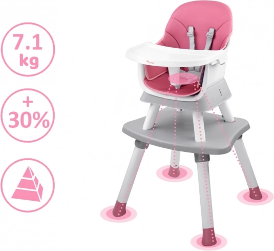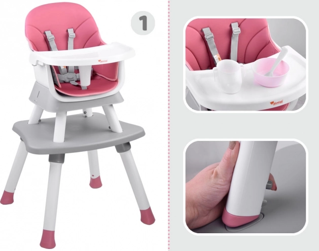 Este mueble modular de diseño moderno encaja en la habitación infantil, la cocina o el salón y se adapta sin esfuerzo a las necesidades diarias: desde la alimentación hasta el juego. El asiento de forma ergonómica con bloqueador antideslizamiento y arnés de 5 puntos garantiza seguridad y comodidad. La bandeja extraíble se puede enjuagar rápidamente bajo el grifo o lavar en el lavavajillas.