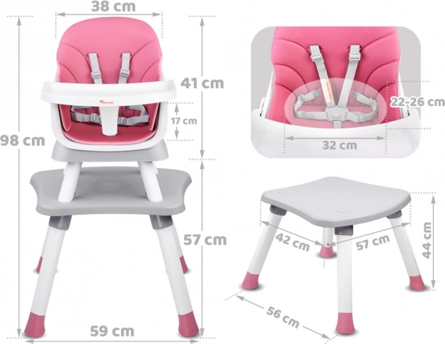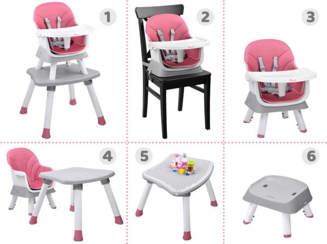 - 6 funciones en 1: trona alta con bandeja, elevador para silla de comedor, trona baja con bandeja, trona + mesa, mesa con tablero para bloques, taburete bajo