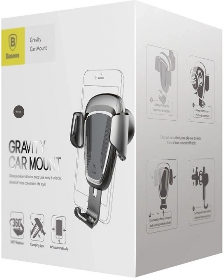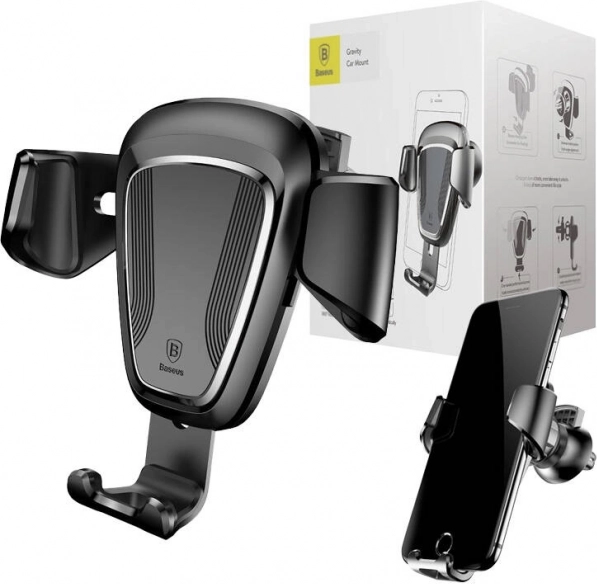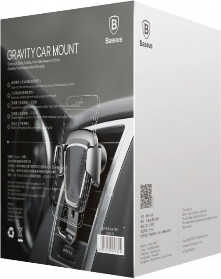 Disfruta de un uso seguro y claro del teléfono durante la conducción. El mecanismo gravitacional del soporte BASEUS se cierra automáticamente al insertar el teléfono y lo fija firmemente, mientras que las almohadillas suaves protegen el dispositivo contra arañazos. Su diseño compacto en elegante color negro se instala fácilmente en la mayoría de rejillas de ventilación.
