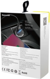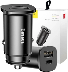 Mantén tus dispositivos siempre listos para la acción. Baseus Square es un cargador de coche de 30 W de metal con doble salida USB-A + USB-C. Gracias a su amplia compatibilidad con protocolos de carga rápida, garantiza una recarga estable y segura incluso en viajes cortos.