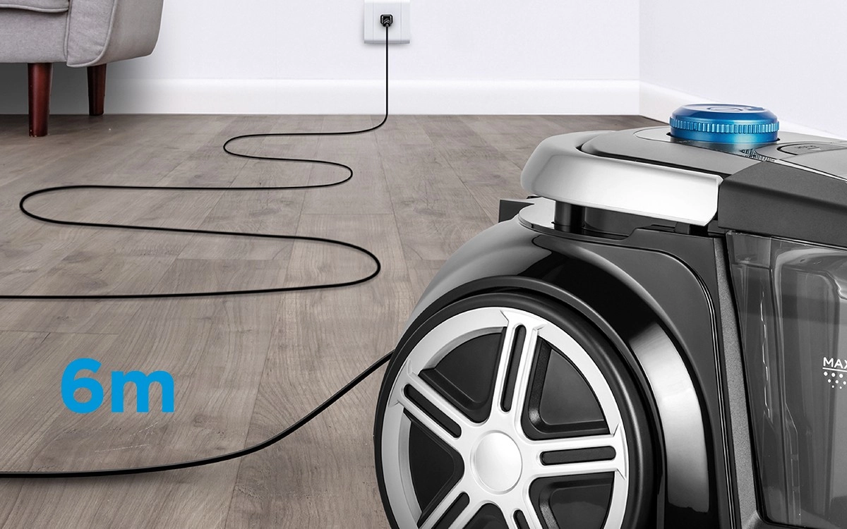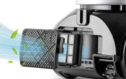 El motor de 600 W proporciona una potencia de succión de hasta 130 W, por lo que puede con polvo, migas y pelos. El filtro HEPA 12 captura partículas finas para un aire más limpio en el hogar.
