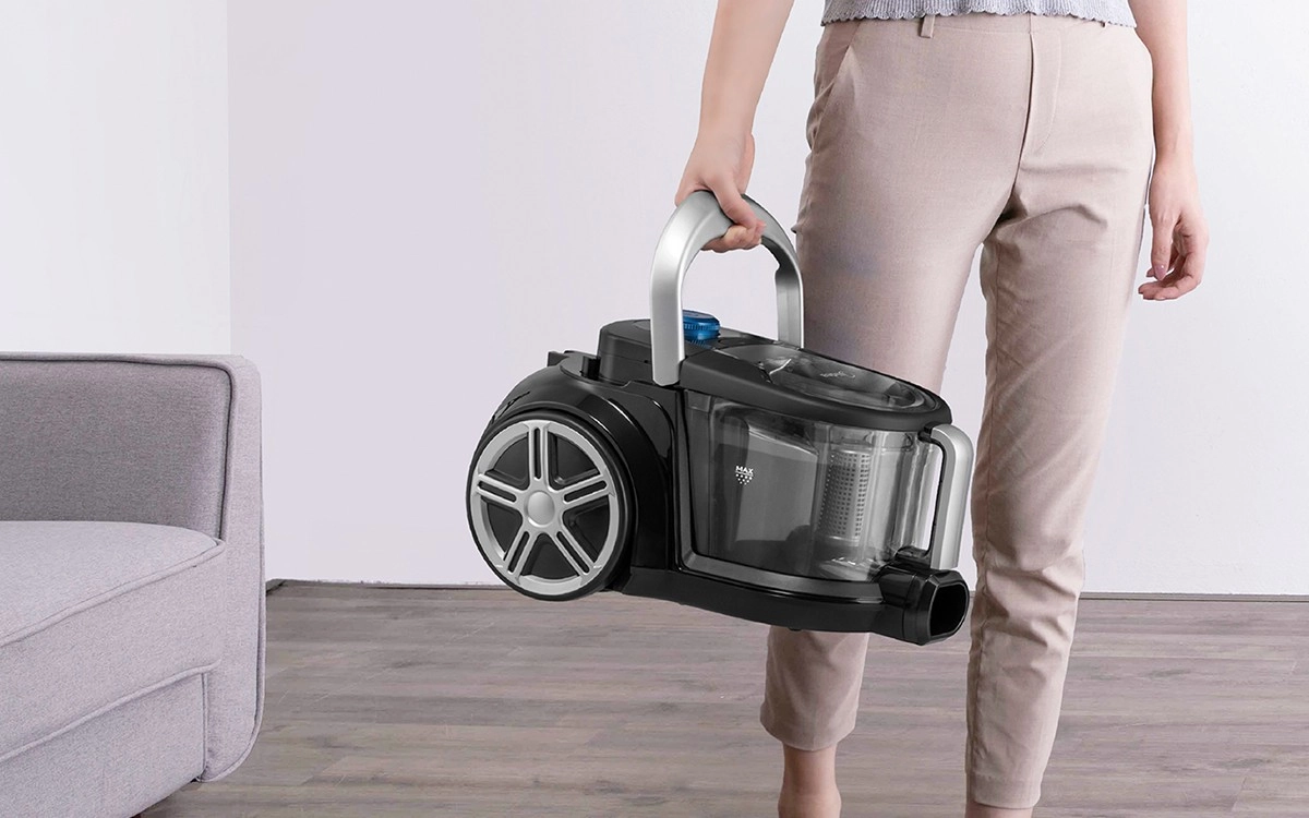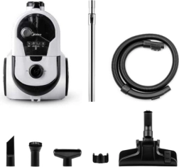 Disfruta de una limpieza fácil y eficaz con la aspiradora sin bolsa Midea C7. Es sorprendentemente ligera, se transporta muy bien gracias a su asa práctica y, con su cable de alimentación de 5 m y enrollado automático, ofrece libertad de movimiento. El amplio depósito de 3 l se vacía de forma rápida y sin ensuciar.