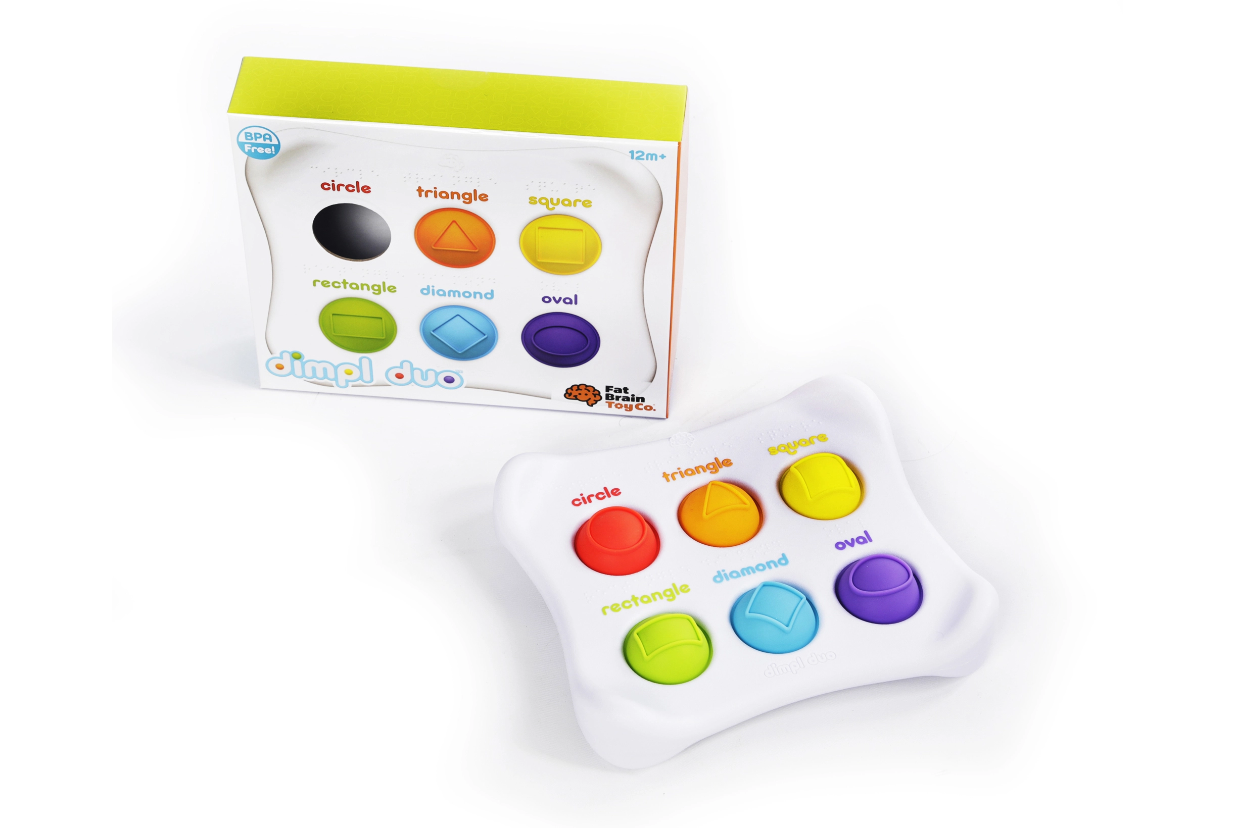 Fat Brain Dimpl Duo son cojines presionables hechos de silicona suave que favorecen el desarrollo de las funciones motoras en los niños. Contribuyen de forma excelente al desarrollo de la motricidad gruesa y ayudan a coordinar correctamente los movimientos en el sistema “ojo-mano”.