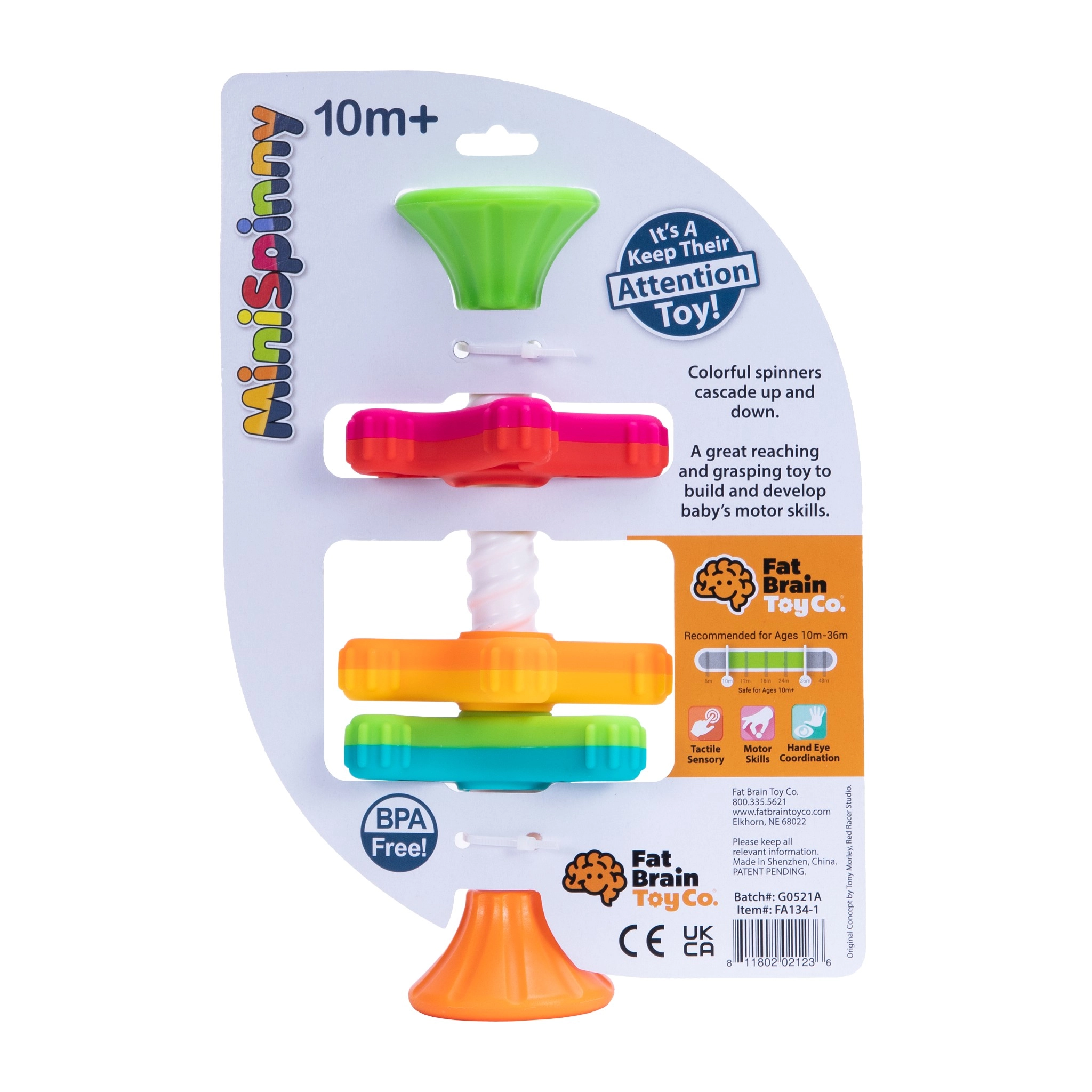 Gracias a la ventosa, el juguete se fija fácilmente a una mesa, a la bandeja de la trona o a una ventana: nada se pierde y las piezas se mantienen unidas. MiniSpinny es ideal para casa, de viaje e incluso para el baño. El plástico seguro, sin BPA ni ftalatos, garantiza un juego sin preocupaciones.