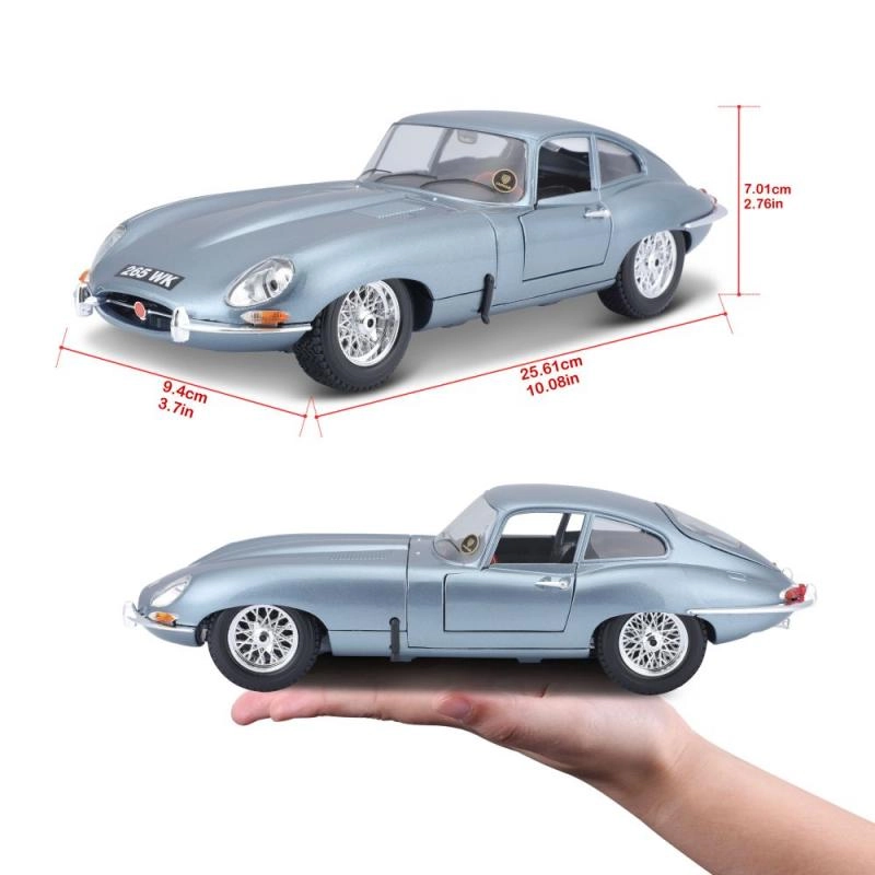 Construcción die‑cast con numerosos detalles finos, elementos cromados y proporciones auténticas del legendario E‑Type.