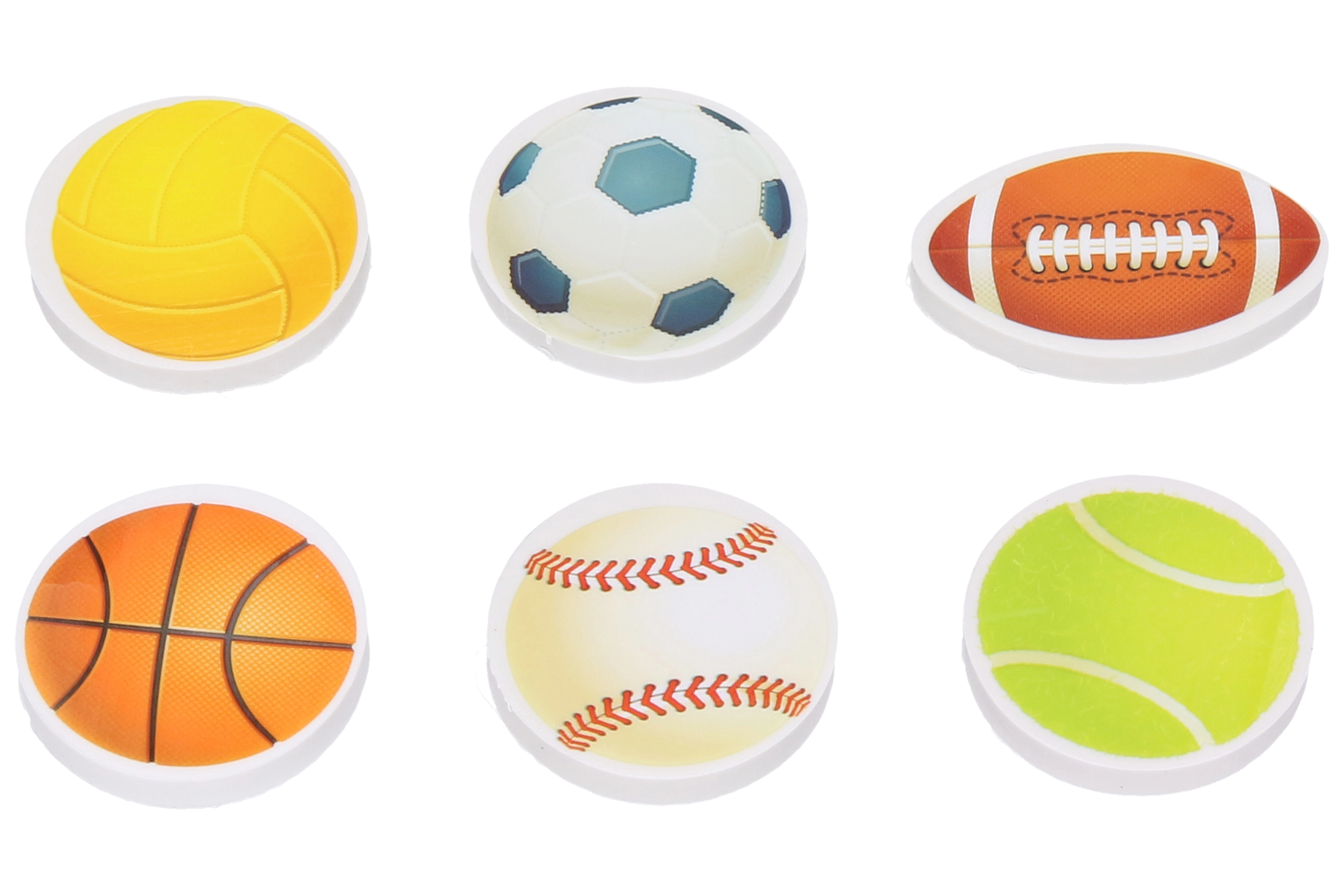 Práctico accesorio escolar para escribir y dibujar a diario. Esta goma de borrar con motivo deportivo elimina de forma fiable las marcas de grafito y deja el cuaderno limpio. Gracias a sus dimensiones compactas, cabe en el estuche y en el escritorio. Enviamos las variantes según la disponibilidad actual en almacén; puede indicar la variante deseada en la nota del pedido.