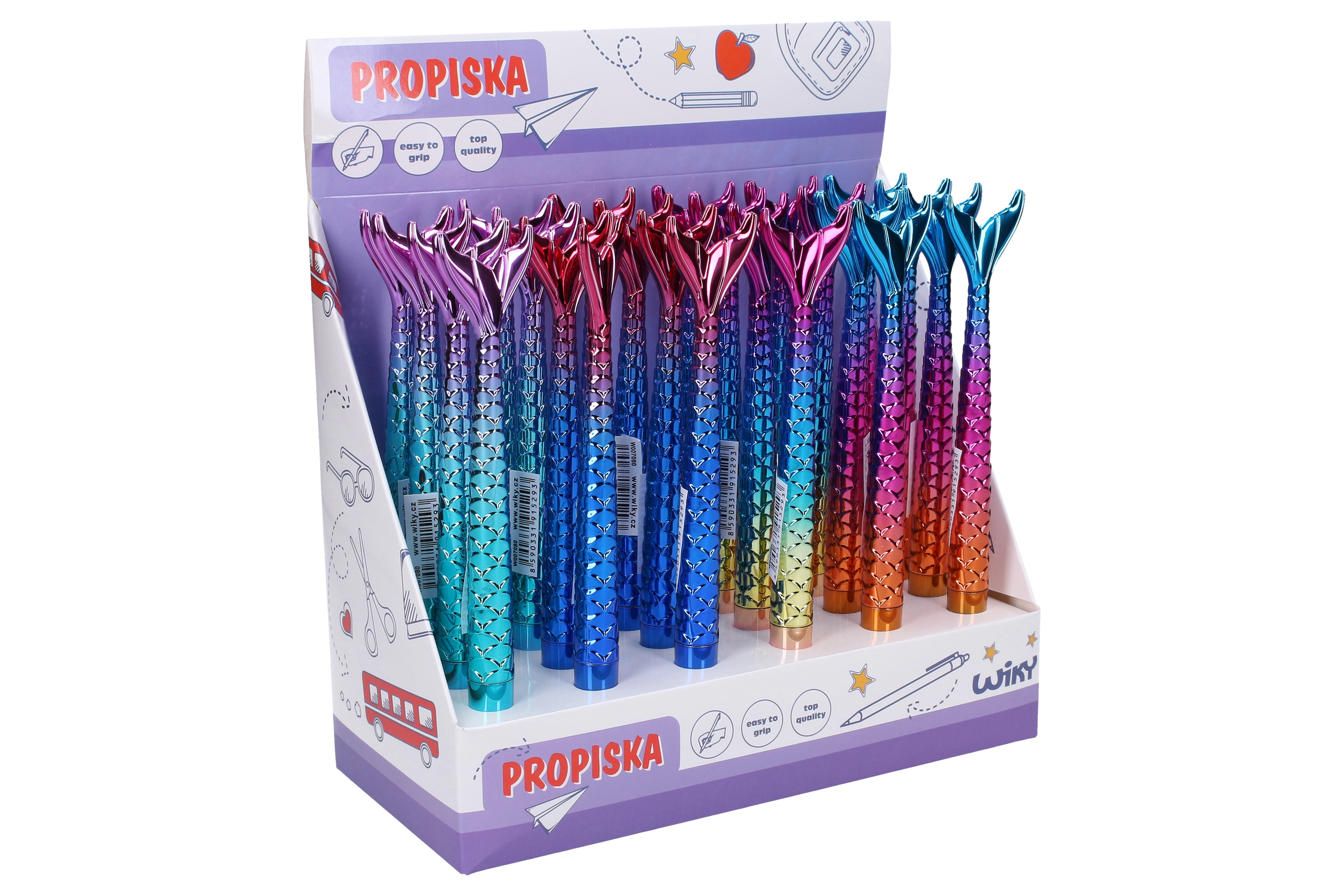 Elegante bolígrafo con forma de sirena para escribir en la escuela y en casa. Ofrece un agarre cómodo y una escritura fluida con tinta azul. Su diseño original encantará a niños y amantes de los motivos marinos.