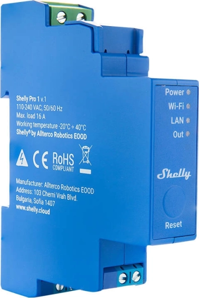 Descubre el relé de un canal Shelly Pro 1, que soporta cargas de hasta 16 A. Es compatible con asistentes de voz populares como Google Assistant, Samsung SmartThings y Amazon Alexa, lo que permite un control automatizado fácil de tu hogar. Gracias a sus contactos libres de potencial, puedes manejar de forma segura y flexible diferentes tensiones.