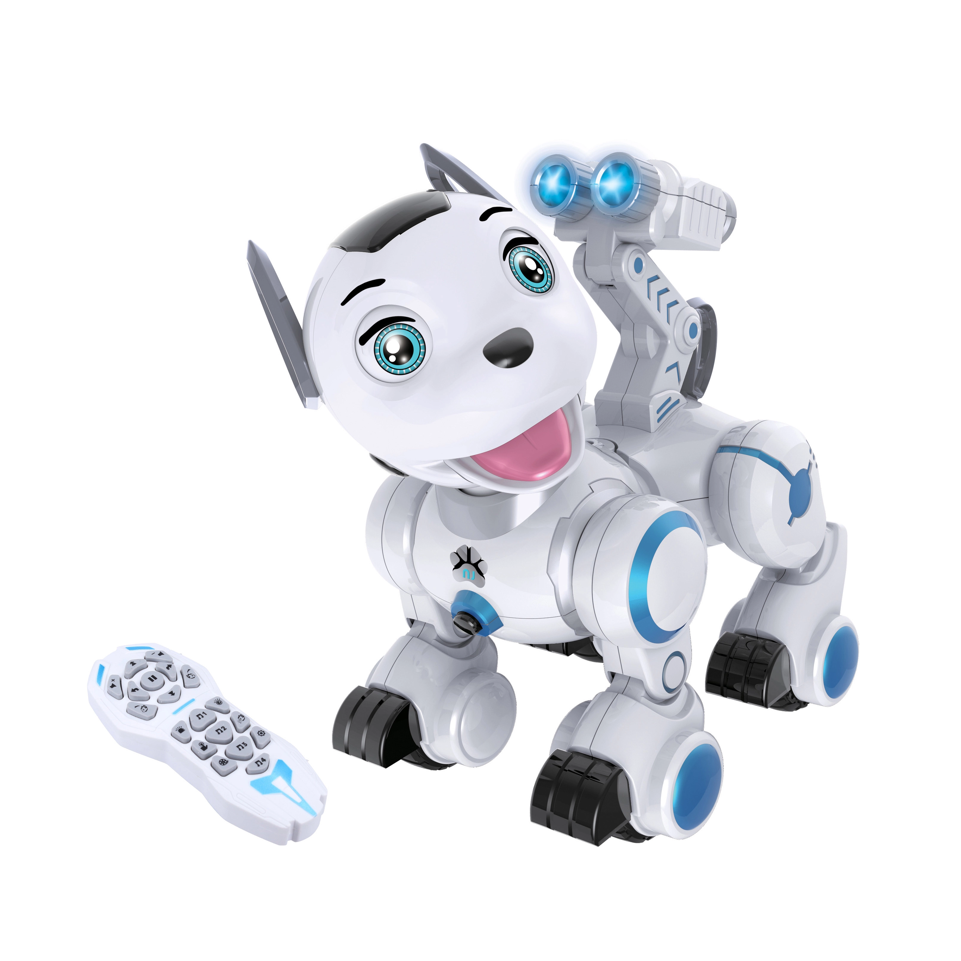 Adorable perro robótico a control remoto, un gran compañero para niños desde 3 años. Puede caminar hacia adelante y hacia atrás, girar, mover la cabeza, ladrar y gemir y sorprende con efectos de luz y sonido. Gracias a su baile y reacciones divertidas, se gana rápidamente el corazón de grandes y pequeños, se carga cómodamente por USB y está listo para vigilar tu territorio a tu lado.
